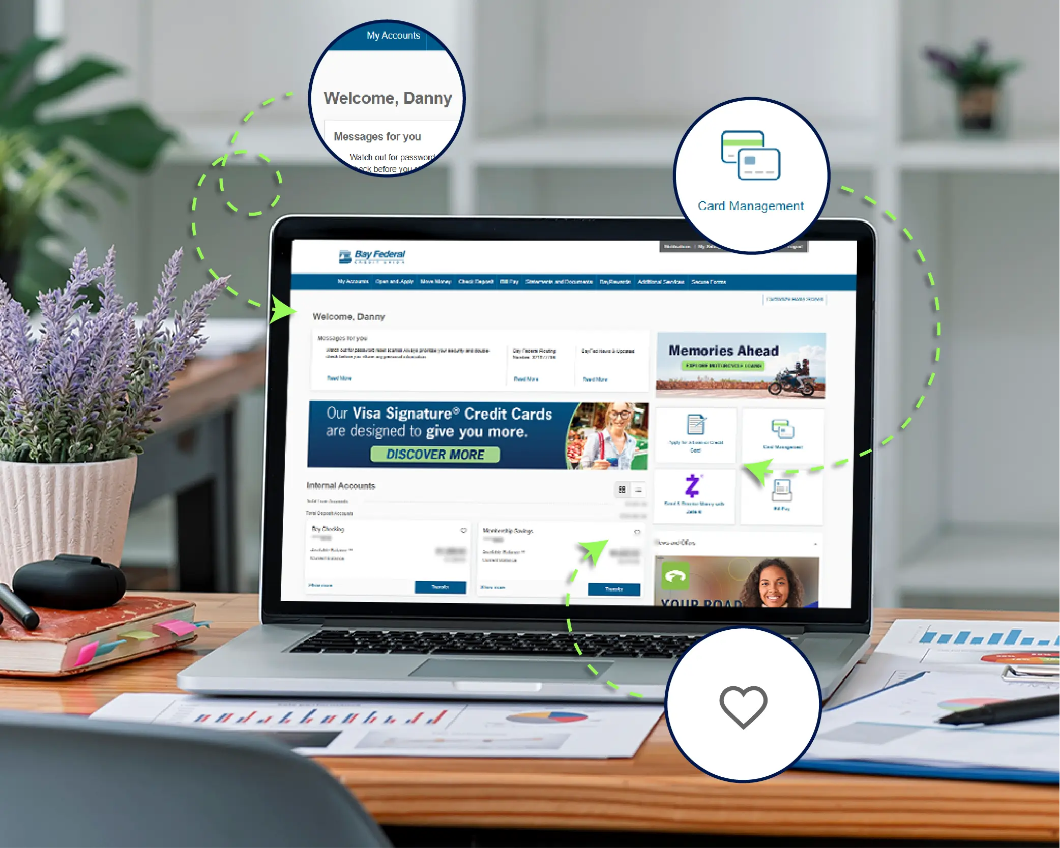 Get ready for an updated digital banking experience! The upcoming changes to BayFedOnline and the BayFed Mobile app bring a modern touch and updated look, while maintaining the same navigation you're used to. Find everything in the same place, but enjoy more customization to your home page.